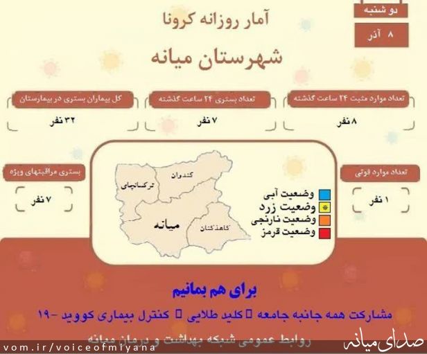 جدیدترین آمار کرونا در شهرستان میانه