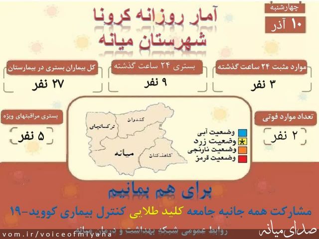 جدیدترین آمار کرونا در میانه با دو فوتی