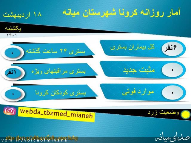 کد خبر: ۱۱۷۷۲۰ گوناگون ۵۳۰ بازدید ۰ دیدگاه (۰ تایید شده) جدیدترین آمار کرونای شهرستان میانه (۱۸ اردیبهشت) صدای میانه ۱۴۰۱/۲/۱۸ ۲۰:۱۵